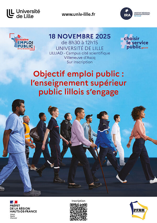 L’Université de Lille et l'IRA de Lille organisent leur tout premier forum de l'emploi public. Un événement à destination des étudiants et futurs étudiants, afin de faire découvrir la richesse et la diversité des métiers de la fonction publique.
