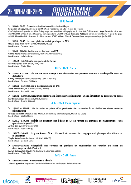 L'INSPÉ accueille le vendredi 28 novembre 2025, de 9:00 à 16:00, sur le site de formation d'Outreau (amphithéâtre) une journée d'études intitulée "Réussite, engagement et formats pédagogiques en EPS".