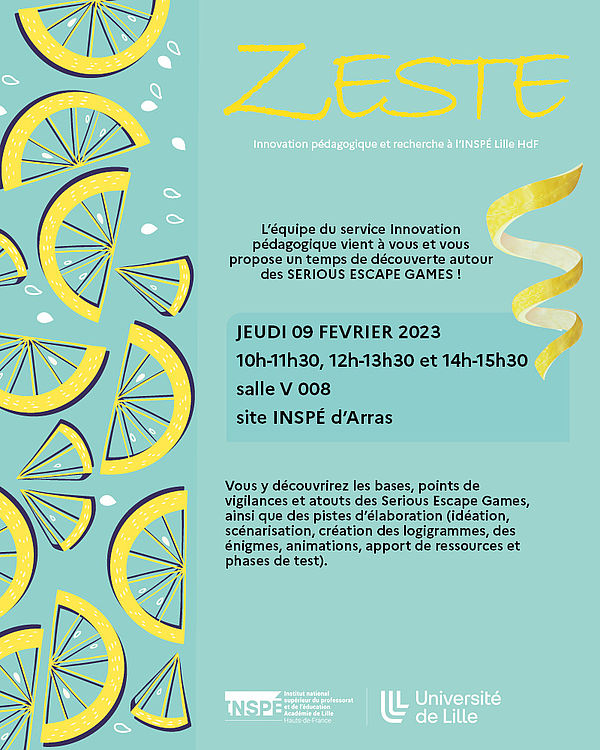 Rendez-vous le jeudi 09 février 2023, sur le site INSPÉ d'Arras, pour un atelier découverte autour des Serious Escape Games.