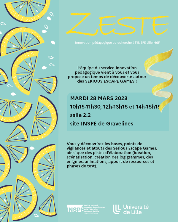 Rendez-vous le mardi 28 mars 2023, sur le site INSPÉ de Gravelines, pour un atelier découverte autour des Serious Escape Games.