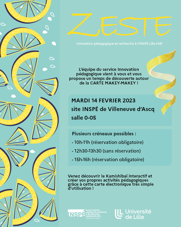 Rendez-vous le mardi 14 février 2023, sur le site INSPÉ de Villeneuve d'Ascq, pour un atelier découverte autour de la carte Makey-Makey.